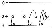 Barkhausens namn är bl.a. förknippat med formeln SR,=u, där S=rörets branthet, R,.= rörets inre resistans och u=rörets förstärkningsfaktor. Denna ekvation bär Barkhausens namn. Barkhausen har också påvisat ett sätt att alstra svängningar med mycket hög frekvens. Man ger gallret i en triod hög positiv och anoden en liten negativ spänning. Elektronerna från katoden flyger delvis genom gallrets maskor, men stötas tillbaka av den negativa anoden. Det kan då inträffa, att några elektroner passerar fram och tillbaka mellan gallermaskorna och således utför en oscillerande rörelse, innan de hamnar på gallret. Elektronrörelser av detta slag kallas "Barkhausen-svängningar". |