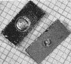 Fig. 9 visar sista etappen vid framställningsproceduren. Den sågade germaniumskivan av 0,4 mm:s tjocklek (1) slipas ner till 0,2 mm:s tjocklek. Ur denna skär man sedan ut rektangulära små plattor av storleken 4x1,5 mm och etsar ytan ner till en tjocklek av 0,14 mm (2). Därefter anbringas två runda skivor av indium på germaniumplattan från båda sidor: det bildar då ett spärrskikt med en tjocklek av några få um (3). Efter det att en baselektrod av nickel lötts på (4) lödes silvertrådar på indiumskivorna (5). Det hela sättes på en stödskiva (6) och smältes in i ett hölje så att transistorn blir skyddad för luft och fuktighet.