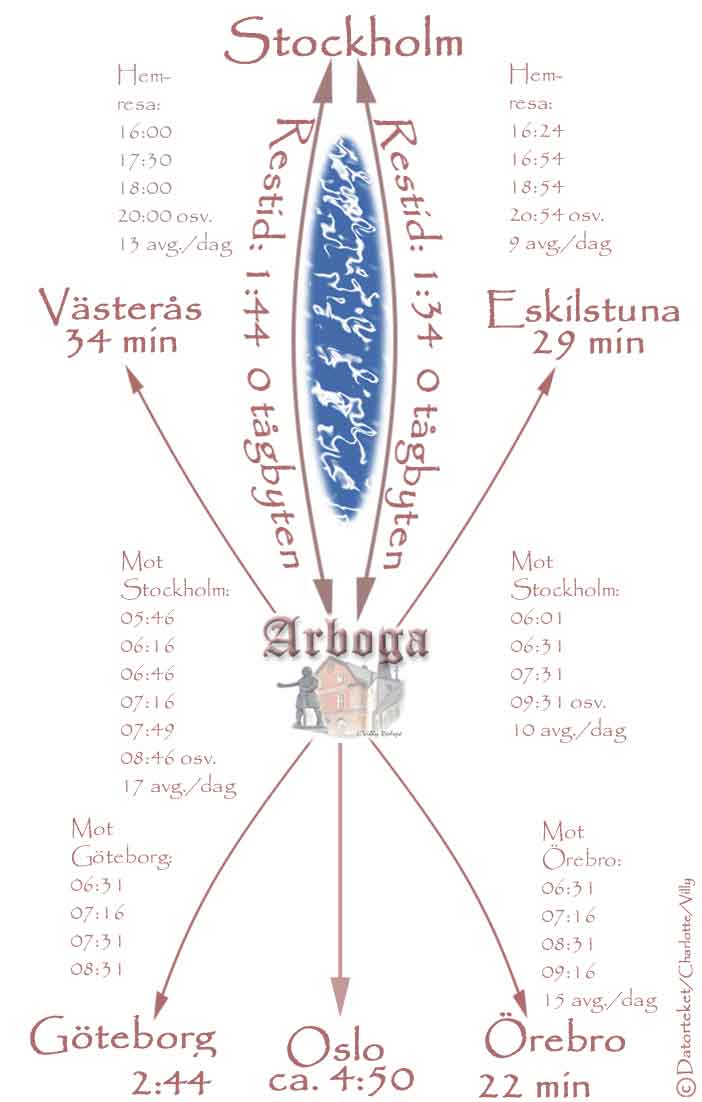 Exempel på reisetider med tog fra/til Arboga