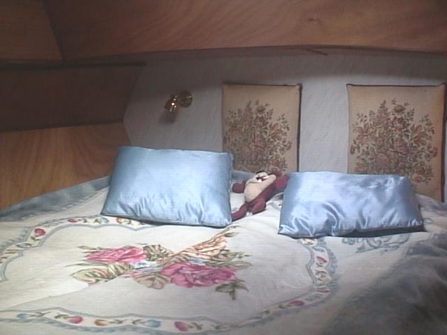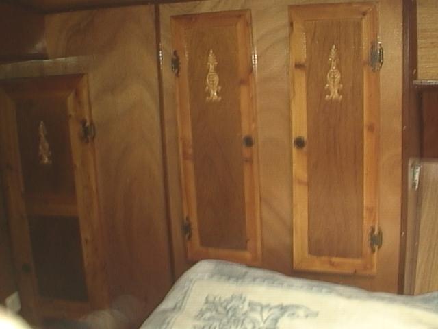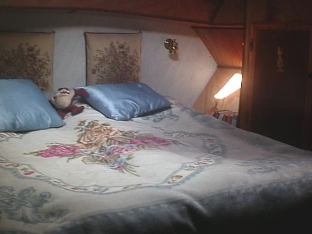 ! st stor dubbelsäng med stuvutrymme under hela sängen.