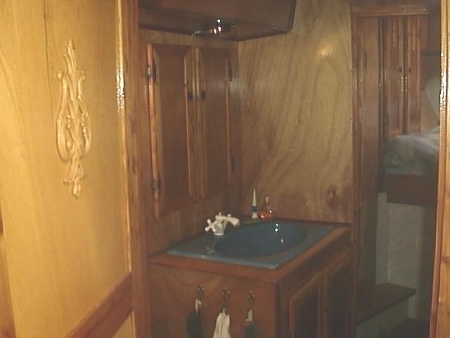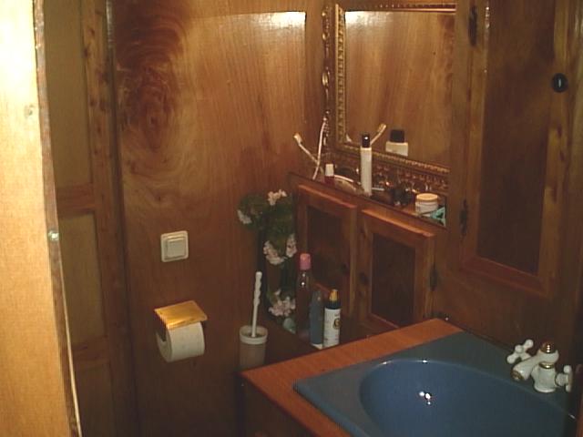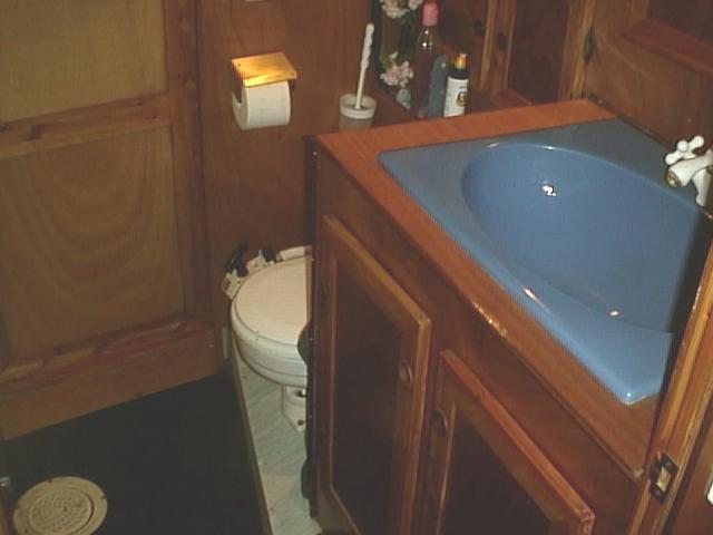 Toalettstol Handfat både sjö/färsk-vatten Dusch lärk och mahognyinredning
