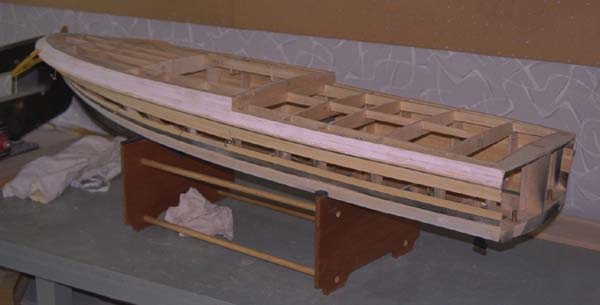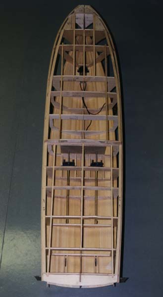 Planking partly in place, NB propellershaft installation. (larger picture) |