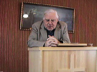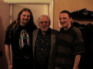 Tomas, Hilding och Mattias i missionshuset i Hetseryd.